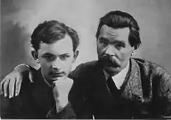 ![]() А. М. Горький с сыном Максимом Пешковым. Париж. 1912 | |