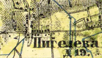 Согласно карте профессора С. С. Куторги 1852 года деревня называлась Пигелево[7].