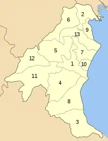 До 2011 года ном Пиерия делился на 13 общин (димов):