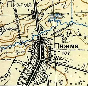 ПИЖНЯ (ПИЖМА) — деревня владельческая при речке Пиженке, число дворов — 36, число жителей: 121 м. п., 135 ж. п. (1862 год)[13]