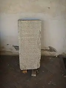 - Церковь Сан-Пьетро-Маджоре, Пистоя: надпись в три строки слева от центрального портала[3].