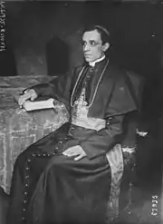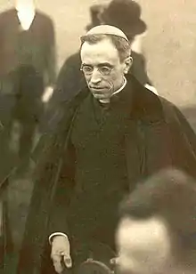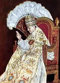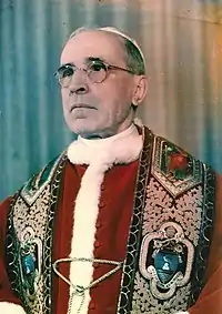 Пий XII (лат. Pius XII, до интронизации — Эудже́нио Мари́я Джузе́ппе Джова́нни Паче́лли, итал. Eugenio Maria Giuseppe Giovanni Pacelli; 2 марта 1876 года, Рим — 9 октября 1958 года, Кастель-Гандольфо) — Папа Римский с 2 марта 1939 года по 9 октября 1958 года. Провозгласил догмат о Вознесении Девы Марии и символически посвятил мир Непорочному сердцу Марии в 1942 году. 18 октября 1967 Папа Павел VI начал процесс беатификации Пия XII. Стал первым папой, избранным из государственных секретарей, начиная с Климента IX в 1667 году. Во время своего понтификата Пий XII канонизировал 34 человека, в том числе Пия X, и беатифицировал — 41. В 1949 году предал анафеме коммунистических лидеров Чехословакии. Пия XII называли «Папой Марии» — за его огромную приверженность Матери Божией, проявившуюся в объявленном им вероопределении относительно Её Успения[1]. Он внёс значительный вклад в развитие католического социального учения. Папа Пий XII скончался 9 октября 1958 года[2]. С его понтификатом заканчивается «Эпоха Пиев».