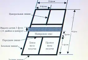 2. С каждой стороны сетки находится неигровая зона двухметровой ширины. Находясь в ней, игрок не имеет права наносить удар по мячу " с лета".