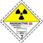Упаковка III — Жёлтая применяется, если максимальный уровень излучения материала в любой точке его поверхности составляет от 0,5 мЗв/ч до 10 мЗв/ч. | ||
