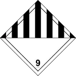 Вещества, которые при перевозке представляют опасность, не описанную другими классами. Примеры: сухой лёд, литий-ионные батареи, конденсаторы с двойным электрическим слоем[15]. | ||