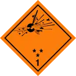 Вещества и изделия, которые характеризуются опасностью взрыва массой[К 3], опасностью разбрасывания либо опасностью загорания. Примеры: пикрат аммония, патроны для оружия, дымный порох[15]. | ||
