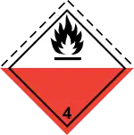 Твёрдые вещества, которые в процессе перевозки способны легко возгораться либо могут вызвать возгорание либо усилить горение в результате трения; самореактивные вещества, подвергающиеся интенсивной экзотермической реакции. Примеры: фосфор, сера, пикрат серебра, солома[15]. | ||