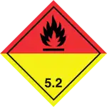 Органические вещества, содержащие группу -O-O-, которые могут считаться производными пероксида водорода, в котором один или два атома водорода замещены органическими радикалами. Органические радикалы могут разлагаться со взрывом, быстро гореть, быть чувствительными к удару или трению, опасно реагировать с другими веществами или вызывать повреждение глаз. Примеры: пероксид ацетилацетона, трет-бутилгидропероксид, бензоилпероксид[19]. | ||