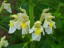 Цветки 2—3 см длиной, от бледно-жёлтого до беловатого цвета, часто с жёлтой трубкой венчика и изредка с пурпурными пятнышками на ней (однако вся нижняя губа никогда не бывает пурпурной, в отличие от пикульника красивого (Galeopsis speciosa). Как и листья, цветки опушённые, с железистыми волосками.
