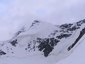 ![]() Пик Есенина с перевала Цаннер Левее, в облаках — Гестола | |