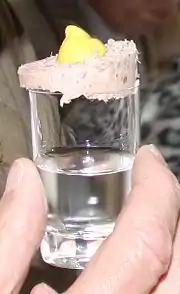 В качестве напитка по традиции использовался можжевеловый шнапс, производимый в Тапиау (ныне город Гвардейск). В наши дни шнапс Pillkaller Machandel производится в Ахаузене, он является популярным аперитивом на севере Германии. На старо-фризском (нижненемецком) языке ягода можжевельника называется «Machandel», отсюда и второе название Pillkaller Machandel. Но подойдёт и зерновой шнапс (Doppelkorn, Kornbrand, Edelkorn), можжевеловый шнапс Steinhaeger или джин. В качестве закуски — лебервурст и горчица[1].