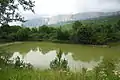 Озеро вблизи г. Пиляки. На заднем плане - г. Спиради