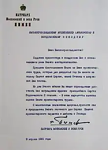 С июля 1960 по 14 ноября 1961 года управляющий делами Московской Патриархии.