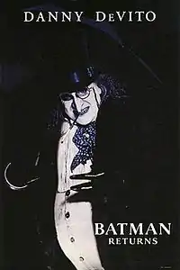 - В фильме «Бэтмен возвращается» роль Пингвина сыграл известный итало-американский актёр Дэнни Де Вито. Здесь Освальд Кобблпот представлен генетическим мутантом. Он также является наследником богатой семьи, однако из-за его уродства и хищного аппетита родители избавились от него, сбросив коляску с Освальдом с моста в канализацию. Но он выжил (его вырастили и воспитали живые пингвины из заброшенного городского зоопарка) и спустя 33 года возвращается в Готэм-сити, чтобы захватить в нём власть. Объединившись с коррумпированным бизнесменом Максом Шреком, он быстро завоёвывает популярность в городе и готовится стать его мэром. Главной своей задачей он ставит убийство всех перворождённых сынов аристократии города, намереваясь подставить в этом Бэтмена. Однако супергерою удаётся его разоблачить, и Пингвин скрывается. Уйдя в канализацию, он планирует взорвать весь центр города при помощи радиоуправляемых пингвинов. Бэтмен снова мешает ему и приводит их прямо к логову злодея. Пингвин гибнет от полученных ран. После его смерти, группа пингвинов хоронят его тело в воде.