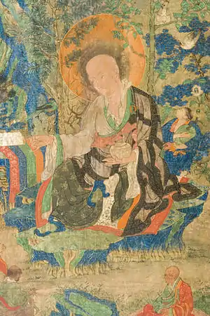 ![]() Изображение Пиндолы, сделанное в 17 веке. Восточный Тибет, регион Кам, монастырь Трунгпа. | |