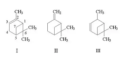 - 2,6,6-триметилбицикло[3.1.1]гепт-3-ен (δ-пинен) (формула III)