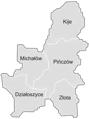 - сельские гмины: Гмина Кийе, Гмина Михалув, Гмина Злота