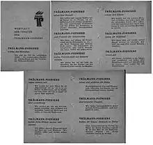 Примером нам служит Эрнст Тельман. Я, пионер-тельмановец, клянусь жить, учиться и бороться так, как учил нас Эрнст Тельман. Верный нашему девизу, за мир и социализм всегда готов!