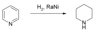 При нагревании в серной кислоте в присутствии солей меди или серебра пиперидин дегидрируется в пиридин.
