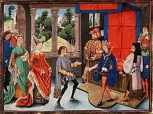 ![]() Святой Губерт предлагает свои услуги Пипину II Геристальскому. | |