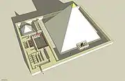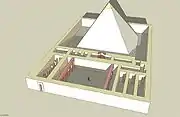 Реконструкция погребального комплекса Усеркафа. Вид на заупокойный храм.
