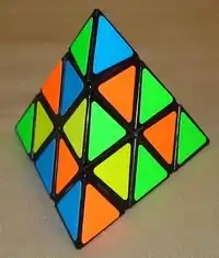 Сборка пирамидки проще сборки кубика Рубика. Взаимное расположение цветных граней осевых и тривиальных элементов задано конструкцией, и они легко выставляются в правильные положения (трилистник, аналог «креста» у кубика Рубика, только конструктивно он формируется одновременно для всех граней), после чего остаётся упорядочить 6 рёберных элементов.