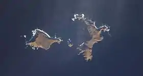 ![]() На западе - остров Хвостова, на востоке - Давыдова, между ними - Пирамид, на севере - Лопи. | |
