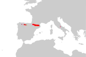 Вид распространён в Андорре, Франции, Италии, Испании. Высотный диапазон обитания 400—2800 метров над уровнем моря.