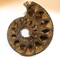 Раковина аммонита, замещённая пиритом