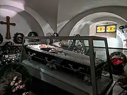 Официально гробница Пирогова именуется как «церковь-некрополь». Тело Пирогова находится несколько ниже уровня земли в крипте — цокольном этаже православного храма, в застеклённом саркофаге, к которому открыт доступ всем желающим отдать дань уважения памяти великого учёного[25].