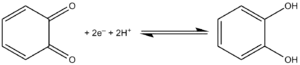 Проявляет свойства фенолов. Образует моно- и дисоли с основаниями, хелаты — с некоторыми металлами, в частности с титаном, цирконием, ниобием, оловом, свинцом. Проявляет сильные восстанавливающие свойства. Под действием солей серебра окисляется в 1,2-бензохинон по гетеролитическому механизму[4]: