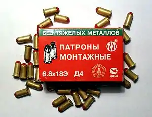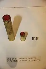 Сигнальный патрон, выстреливаемый из пистолета-ракетницы, относится к пиропатронам.[7]