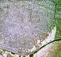 Левее рисунков кто-то нанёс масляной краской и углём буквы и цифры. Рисунки, сделанные древними людьми природной краской — охрой, выдержали тысячелетия, но не могут противостоять современному вандализму.