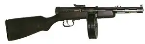| Вид боепитания | коробчатый магазин на 25 патронов, барабанный магазин на 73 патрона, позднее на 71 патрон |