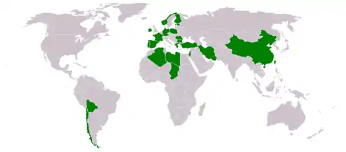 Германия 1904—1945 Швейцария 1900—1945 США 1903—н.в. Франция 1909—1990 Турция 1909—1970. |