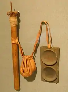 - пенал-палетку из дерева или слоновой кости, висящий на шее, для хранения красок и тростниковых палочек;