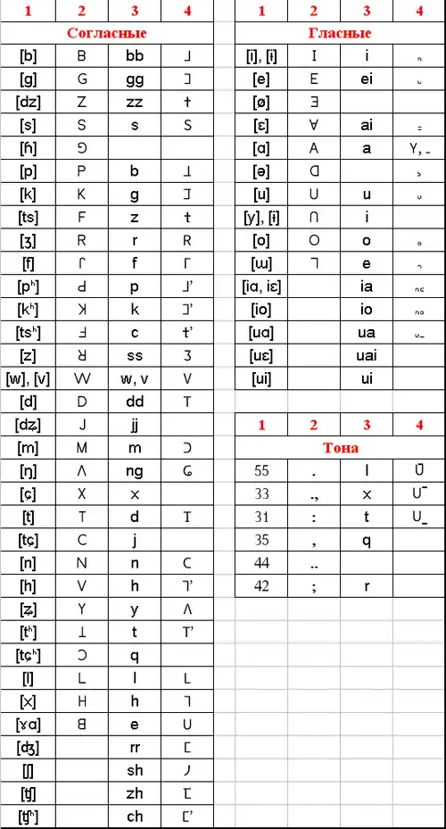 | n | [n] | y | [ʑ] | e | [ɤ], [ɯ] |
