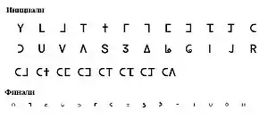 | Происхождение | Включает элементы латиницы и канадского слогового письма |