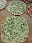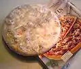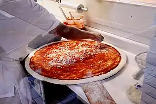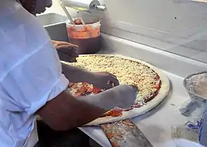 Пи́цца (итал. pizza) — традиционное итальянское блюдо в виде круглой дрожжевой лепёшки, выпекаемой с уложенной сверху начинкой из томатного соуса, сыра и зачастую других ингредиентов, таких как мясо, овощи, грибы и других продуктов.