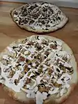 В последнее время стали популярны вегетарианские пиццы, которые могут быть как без мяса, молочных продуктов, и даже без применения пшеничной муки, которая используется для приготовления теста. Само тесто делается из измельчённого семени льна, моркови, сельдерея и кабачков. Все компоненты смешиваются, формируется корж и высушивается в приборе, испаряющем влагу.