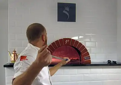 ПИЦЦА, ы, ж. (итал. pizza < итал. pizzicare быть острым). Традиционное итальянское блюдо: тонкая лепёшка из теста с запечёнными на ней под соусом кусочками мяса, сыра, овощей и др. - Похлёбкин В. В. Пицца // Кулинарный словарь. — М.: Издательство «Э», 2015. — С. 290. — 456 с. — 4000 экз. — ISBN 978-5-699-75127-3.