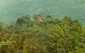 Плаванганский вулканологический наблюдательный пункт в 1985 году, на заднем плане лесные склоны горы Мерапи
