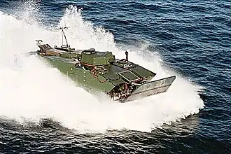 - Плавающие (или амфибийные) бронетранспортёры морской пехоты (серии LVTP и AAV) — предназначены для десантирования методом приводнения с аппарели десантных кораблей и последующих действий в прибрежной зоне. По сути своей представляют боевые машины пехоты. Стрелково-пушечное вооружение представлено автоматическими пушками, автоматическими станковыми гранатомётами и пулемётами. Мореходные качества являются превалирующими над всеми остальными, так как основная задача боевой техники такого рода — предельно быстрая и безаварийная доставка десанта к берегу при различной бальности волнения водной поверхности, удалении корабля-носителя от береговой линии и других факторах, которые не зависят от ходовых качеств указанной техники.