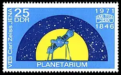 17 ноября 1846 года в немецком городе Йене заработало механическое ателье по изготовлению оптико-механических приборов, что и стало датой создания предприятия Carl Zeiss Jena,[5] создателем которого был конструктор-механик, инженер-предприниматель — Карл Фридрих Цейс, награжденный 1886 году — почетной медалью конгресса российских врачей. Соратниками Карла Цейса были: Альберт Кенинг, Эрнст Аббе, Пауль Рудольф. Механиками Carl Zeiss Jena в 1984 году сконструирован проектор звездного неба с компьютерным управлением «Косморама». Главная разработка 1902 года — четырех линзовый объектив «Тессар», который до сих пор выпускается на предприятии Carl Zeiss Jena.