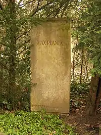 В июле 1946 года Планк посетил Англию, где в качестве единственного представителя Германии принял участие в праздновании 300-летия со дня рождения Исаака Ньютона. Некоторое время престарелый физик оставался почётным президентом Общества кайзера Вильгельма, которое вскоре с согласия учёного было переименовано в Общество Макса Планка (первым его президентом стал Отто Ган)[59]. В Бонне, во время одной из своих лекционных поездок, 88-летний Планк серьёзно заболел двусторонним воспалением лёгких, однако сумел выздороветь. В марте 1947 года состоялось его последнее выступление перед студентами. Научное сообщество Германии готовилось к торжествам по случаю его 90-летия, но за считанные месяцы до этой круглой даты учёный скончался от инсульта. Это случилось 4 октября 1947 года в Гёттингене, где Планк и был похоронен на городском кладбище[60][61].