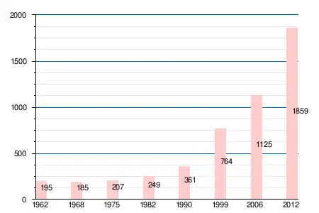| 1962 | 1968 | 1975 | 1982 | 1990 | 1999 | 2006 | 2007 | 2011 | 2012 |
