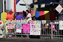 В конце 1970-х пластиковых фламинго стали использовать как символ протеста и нарушения границ[9][31]. В первый день учёбы, 4 сентября 1979 года, перед деканатом Висконсинского университета Мадисона появилась «стая» из 1008 пластиковых фламинго. Партия «Ведро и лопата», сформированная годом ранее в качестве шуточной альтернативы скучному студенческому правительству, таким образом благодарила своих сторонников за оказанную поддержку, которая позволила им победить на перевыборах в Студенческую ассоциацию Висконсина[9][41]. Мероприятие вошло в историю учебного заведения, а открытки с лужайкой перед деканатом в то утро продолжают продаваться в его кампусе[9]. В 2009 году в память об этом событии мэрия Мадисона объявила пластикового фламинго официальной птицей города[27]. По словам Прайс, со временем границы высокого искусства и обыденности стёрлись, китч стал высоким искусством, а пластиковые фламинго перестали выполнять свою протестную функцию[24].