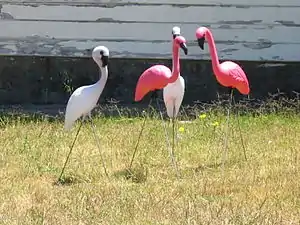 Пластиковые фламинго — одно из наиболее известных садовых украшений в США. В 1957 году Доналд Федерстон из компании Union Products в штате Массачусетс на волне популярности отдыха во Флориде, фламинго и розового цвета создал украшения для газона в виде пары розовых птиц. Дешёвые пластиковые фламинго пользовались популярностью у среднего класса, но стали признаком дурного вкуса в высшем обществе, а выход в 1972 году фильма Джона Уотерса «Розовые фламинго» только закрепил такое отношение к ним. Популярность вернулась с выходом на экраны в середине 1980-х сериала «Полиция Майами: Отдел нравов», на заставке которого появились живые красные фламинго.