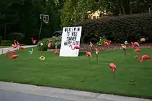 Особенно популярны стали розыгрыши с пластиковыми фламинго на дни рождения[21]. Когда пара близнецов Рик и Ральф Фацио[9][22] устанавливала пару розовых фламинго (которую до этого они украли с другого газона) на лужайке своего двоюродного брата, чтобы весело поздравить того с днём рождения, подошедший к ним прохожий попросил повторить шалость на дне рождения его жены. В 1991 году братья основали компанию Flamingo Surprise, призванную помочь людям весело отметить праздник[9]. В 2001 году эта компания работала в Кливленде и Чикаго и имела франшизы в Сан-Франциско, Оклахома-Сити и Атланте, выполняя от 30 до 100 заказов ежедневно[22].