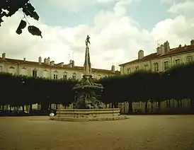 По приказу Станислава Лещинского, герцога Лотарингии, французский архитектор Эммануэль Эре спланировал площадь Сан-Станислас, расположившуюся на территории бывшего герцогского огорода. Площадь имела форму квадрата, по периметру которого располагались роскошные особняки. В 1756 году французским королём Людовиком XV и императрицей Марией Терезией Австрийской (женой Франца I, императора Священной Римской империей и бывшего герцога Лотарингского) был подписан Договор об альянсе между Францией и Австрией. Вскоре после этого площадь была переименована в Плас-д'Альянс. По заказу Станисласа скульптор Поль-Луи Сиффле создал фонтан в честь Альянса.